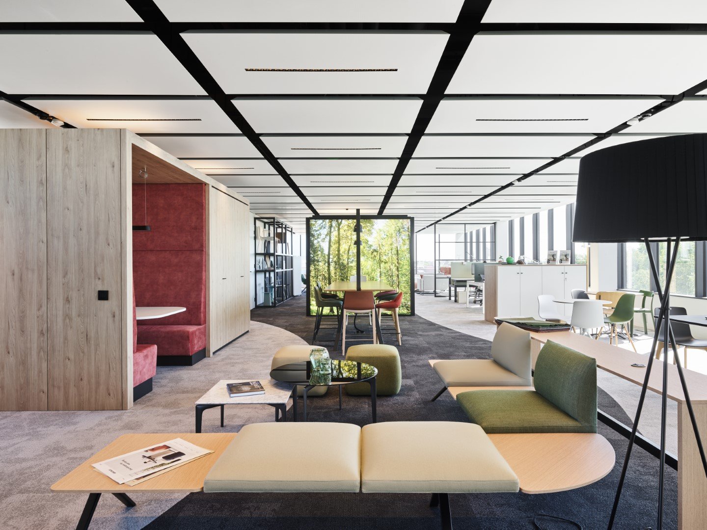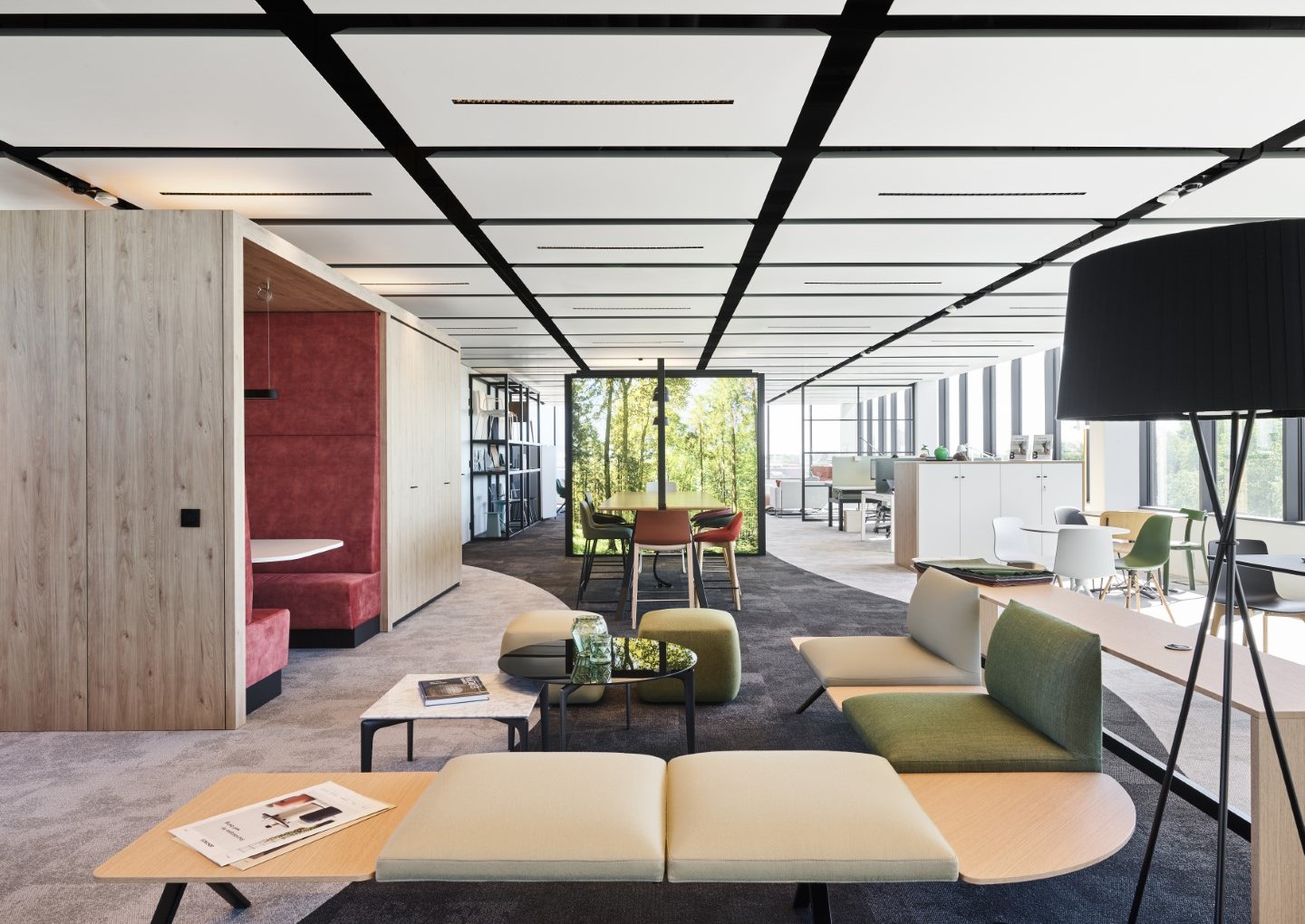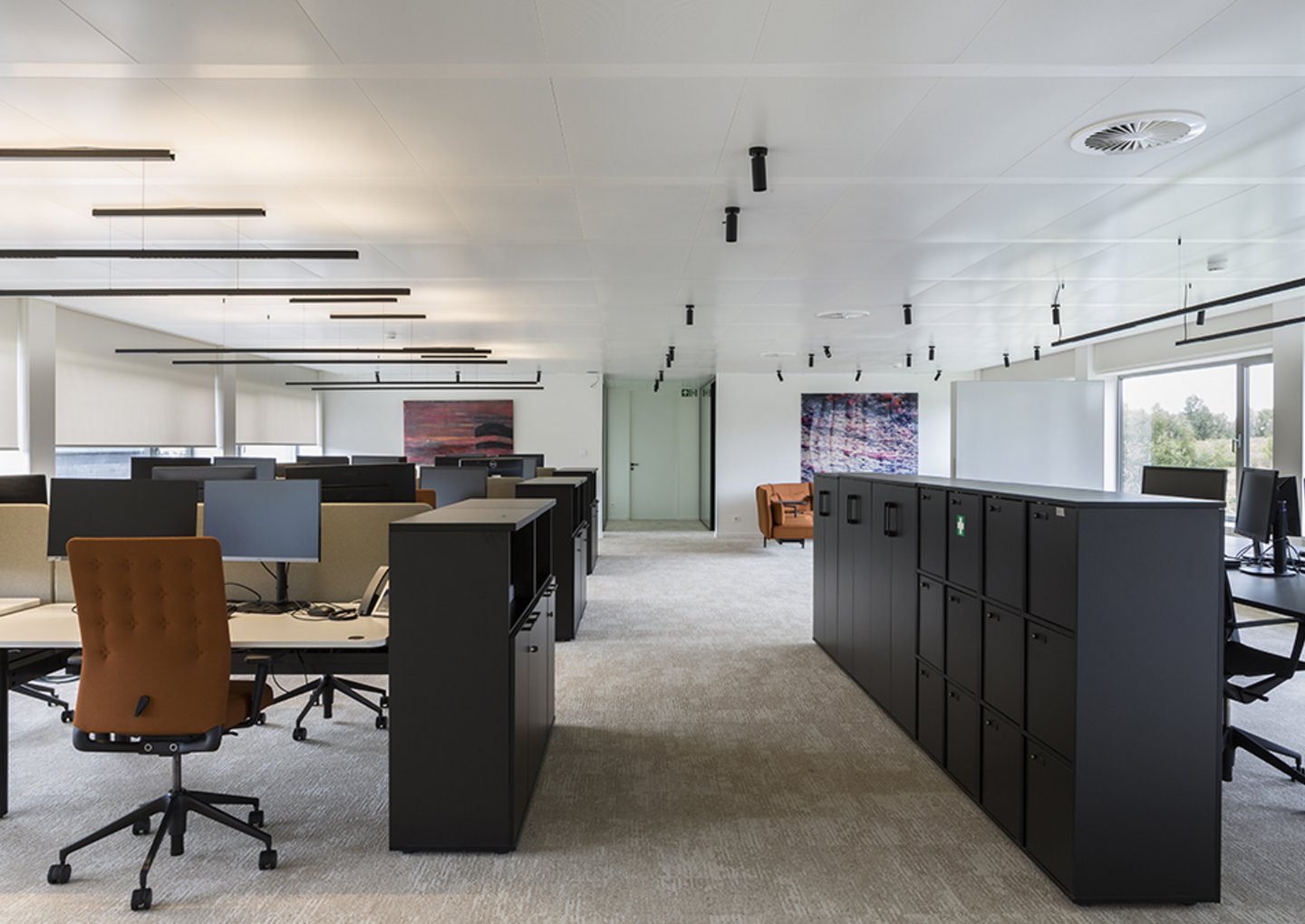 The climate elements on the ceiling tiles replace the classic air conditioning or heating. The plenum is easily accessible. There is almost unlimited architectural freedom in design: ceiling modulation, panel dimensions, colours, perforations, monolithic ceiling appearance are possible according to your wishes.