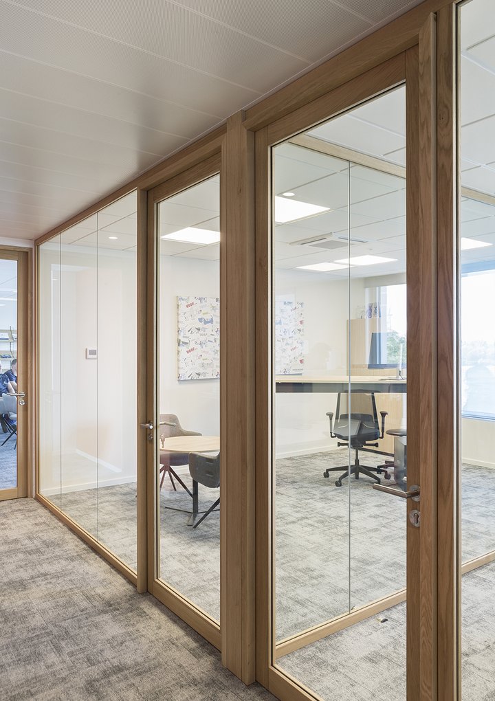 Das System JB 4000 WOOD lässt sich problemlos mit dem System JB 2000 und seinen zahlreichen Varianten kombinieren. Technische Knotenpunkte können somit nahtlos und ohne ästhetische Einbußen integriert werden.