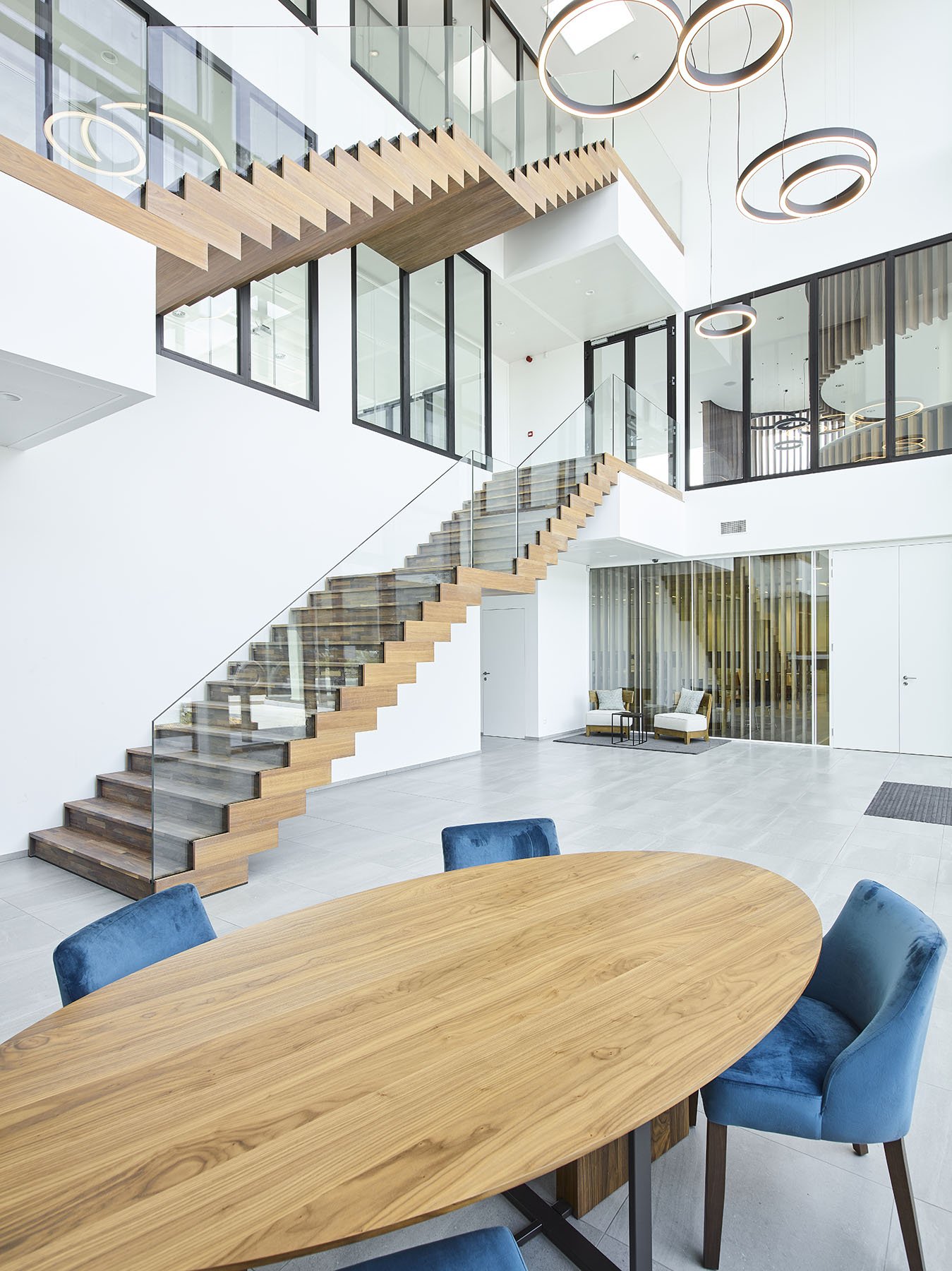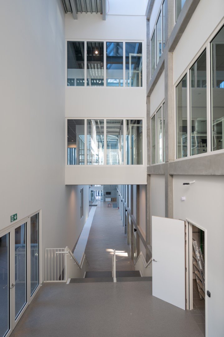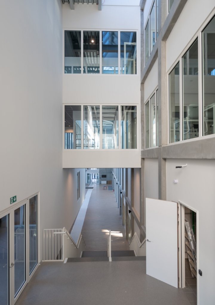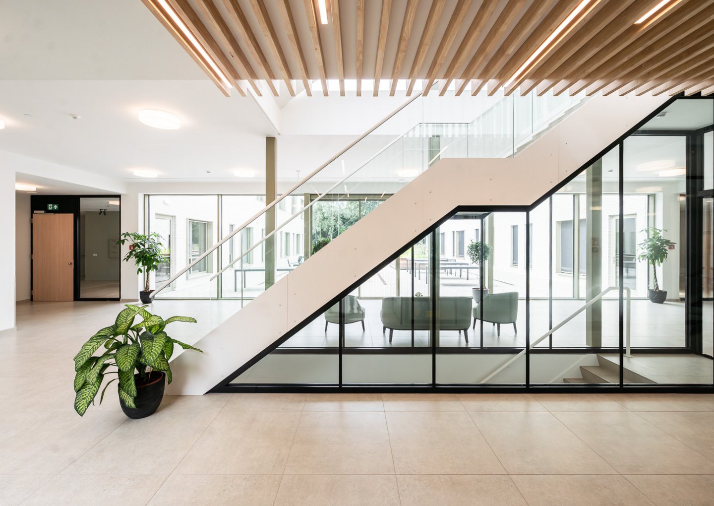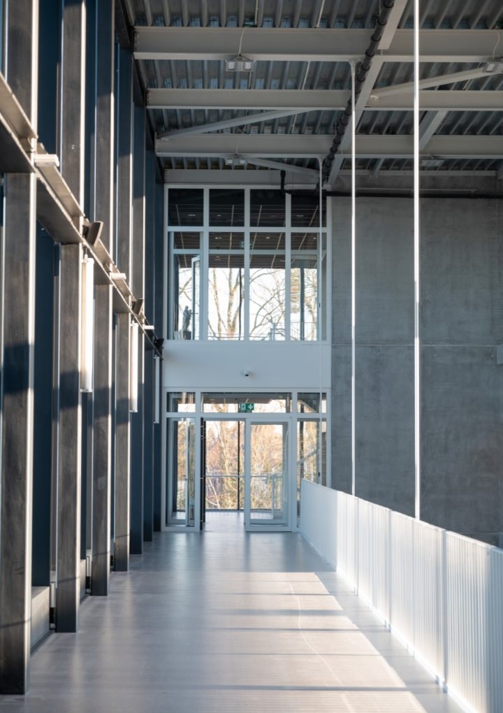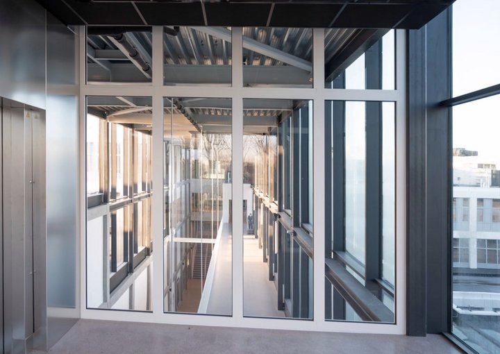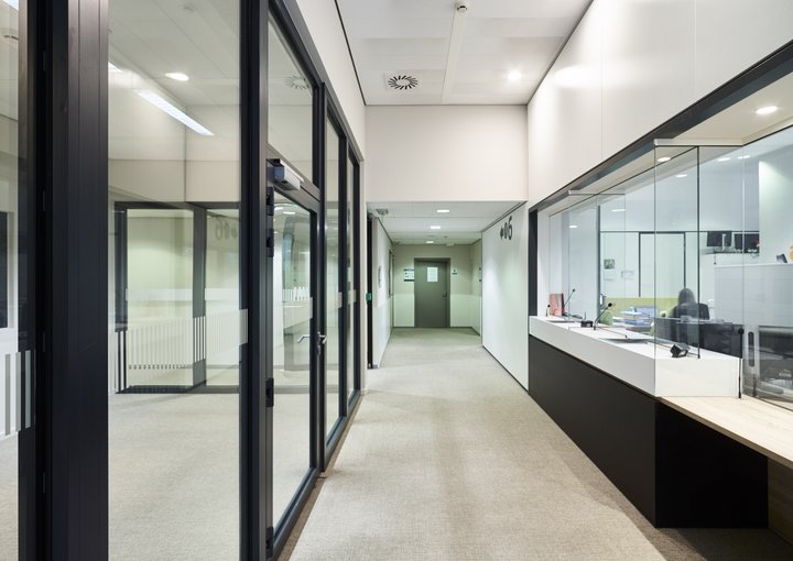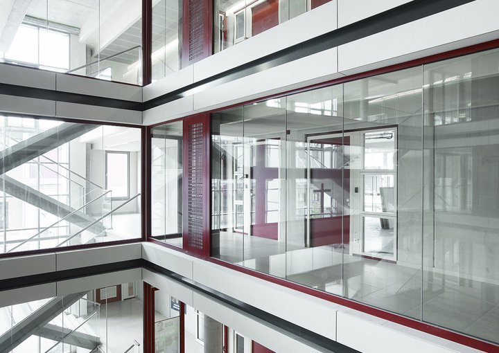 Mit JB FIREGLASS von Beddeleem bleibt die Offenheit des Gebäudes erhalten. Die transparenten Module und Türelemente dieses Systems lassen das Gebäudeinnere optisch größer wirken. Gleichzeitig sorgt das System für Sicherheit, da Brandschutzbereiche im Gebäude organisiert und geeignete Fluchtwege für die Evakuierung von Personen gewährleistet werden können.