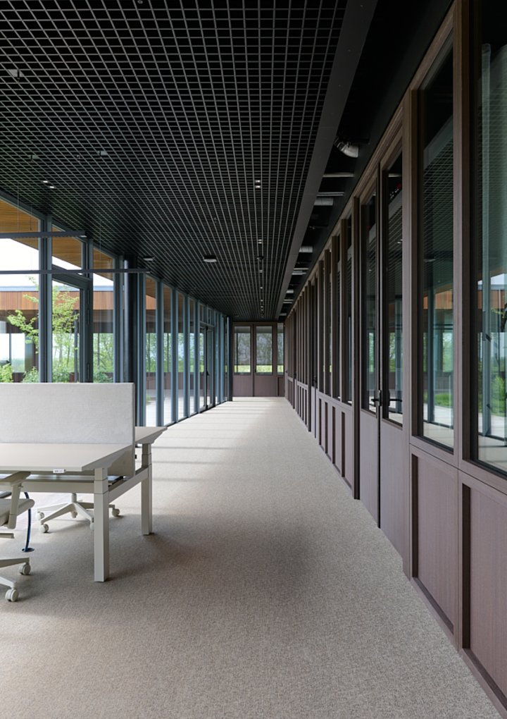 Off the E40, in Drongen, uniform walls and repeating glass panels make up the façade of In the Yard, the Camino Business Group’s (including Durabrik) sustainable business centre. This design facilitates the building’s open-plan layout, providing its tenants unparalleled flexibility.