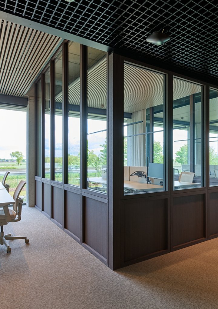 In addition, the wall system’s sleek glass frames contribute to the spaces' overall open, modern feel.