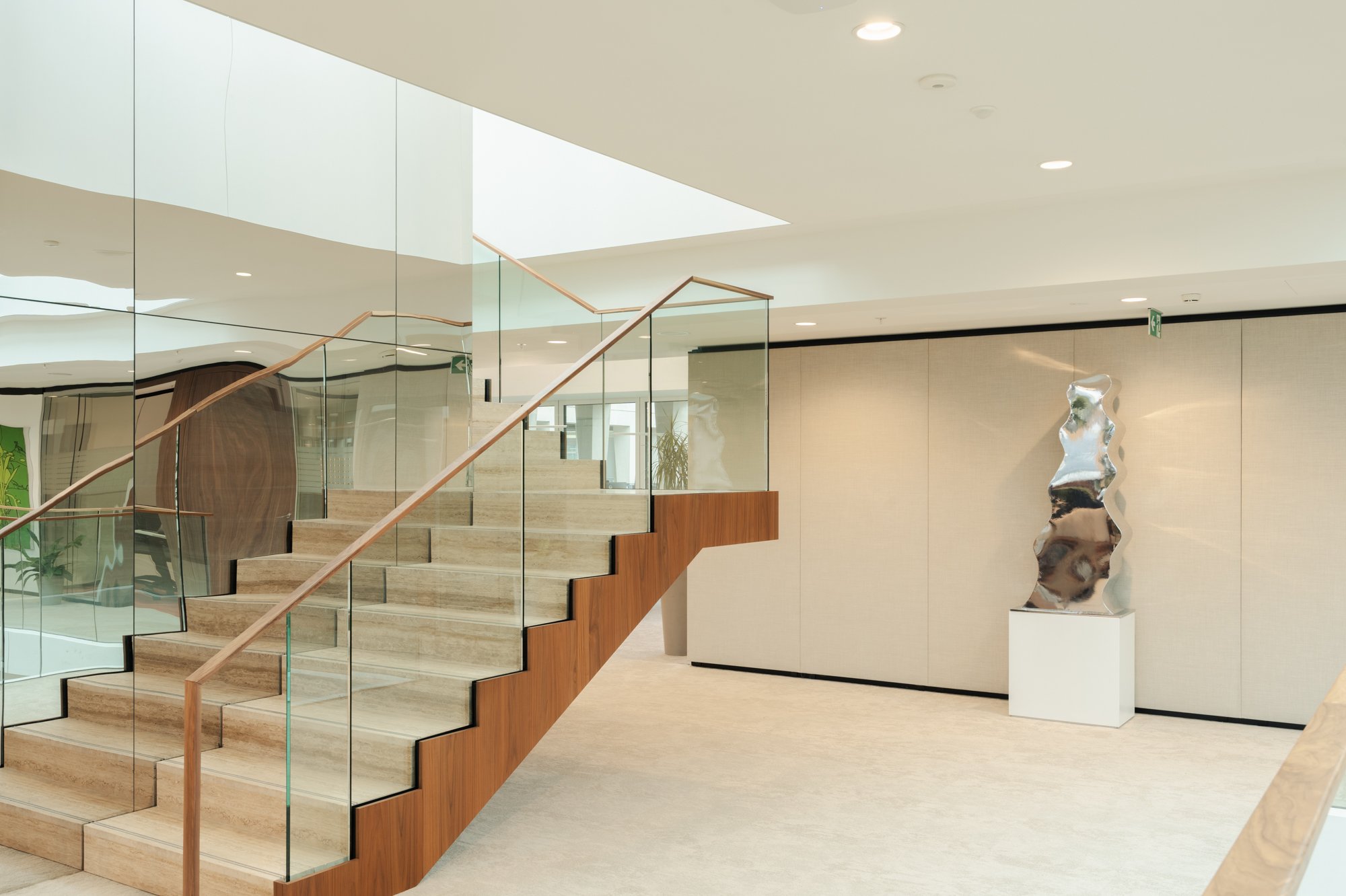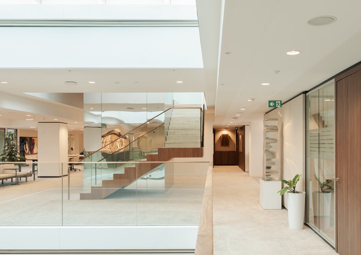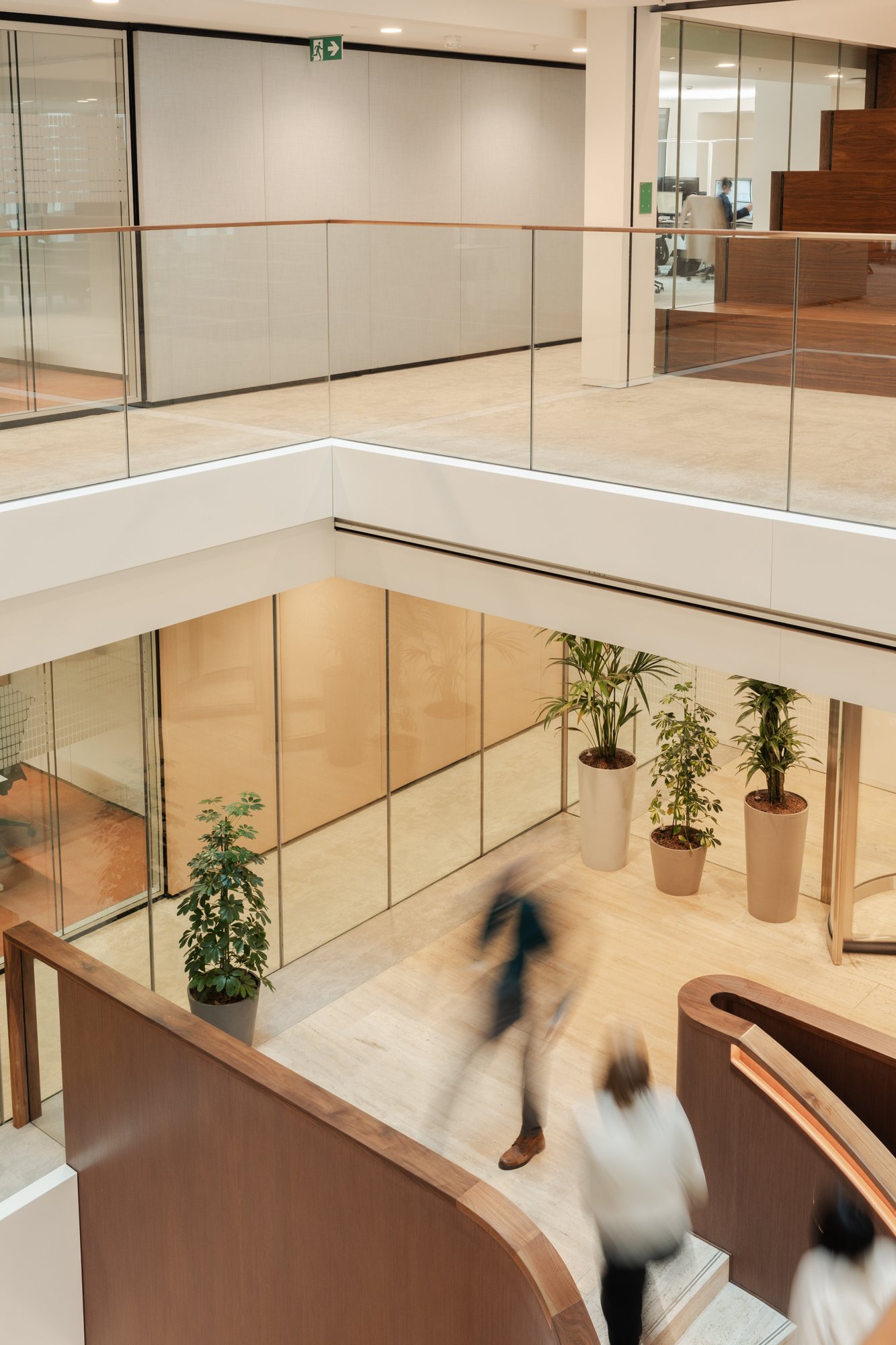 The architectural design was led by A2M and Moreno Architecture, who succeeded in strengthening the original modernist character while integrating today’s standards for sustainability and employee well-being.