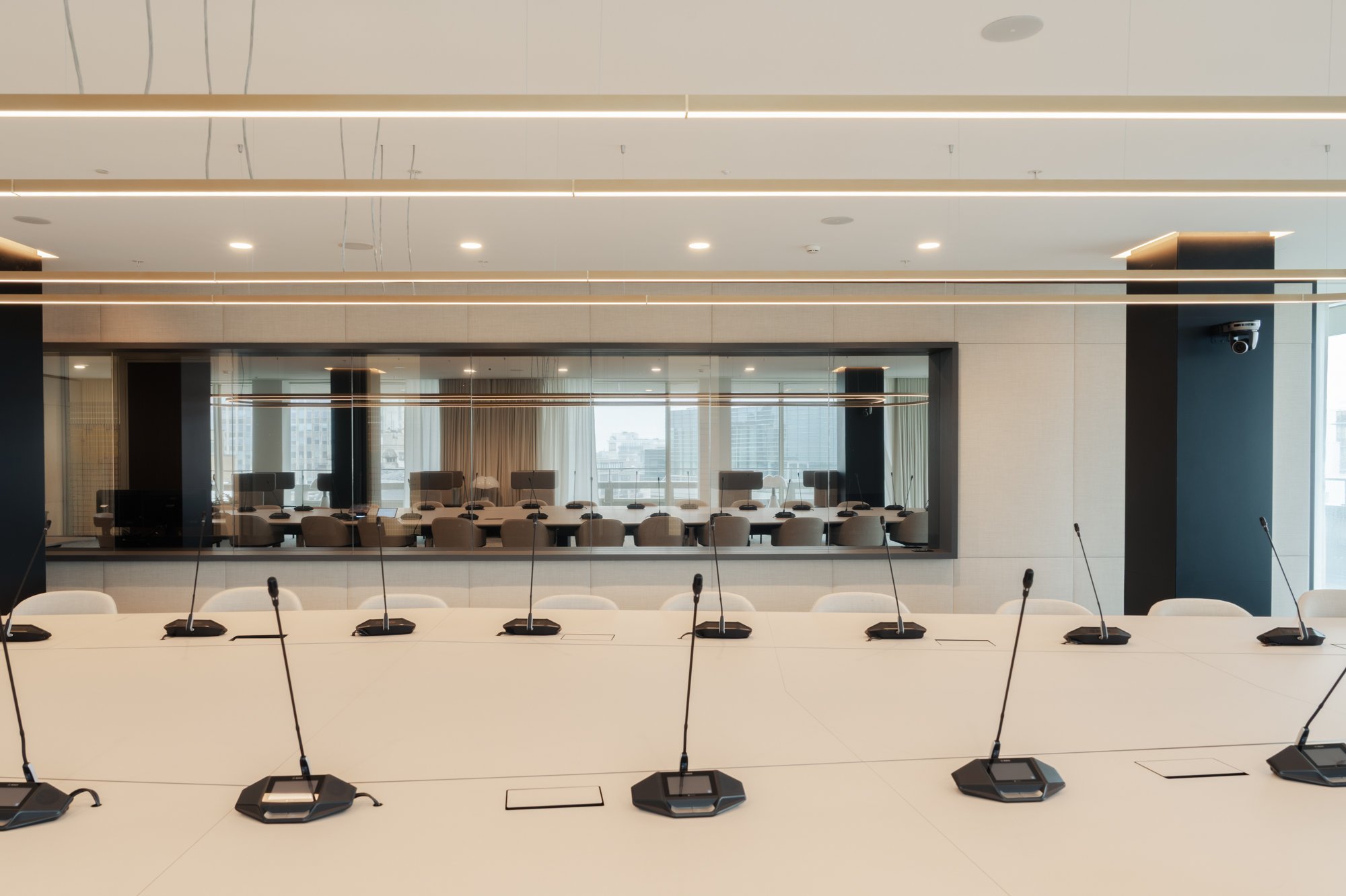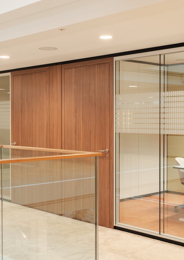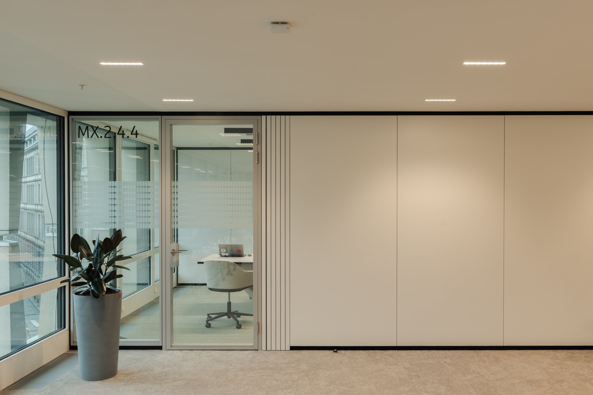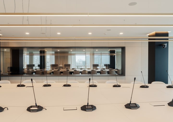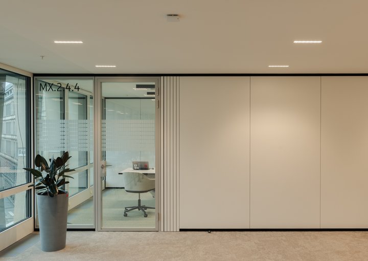 In addition to the office floors, the ING bank branch on the ground floor was equipped with a series of interconnected JB QBE modular units, providing acoustically isolated customer and consultation spaces within the open space.