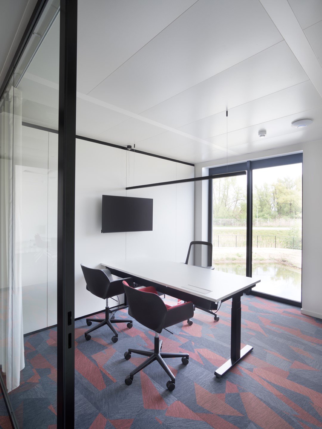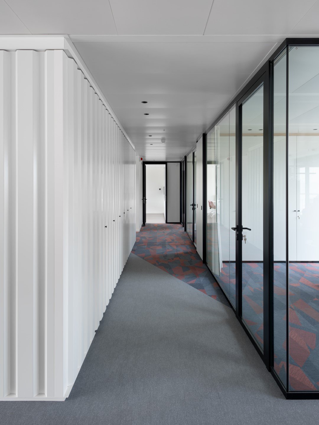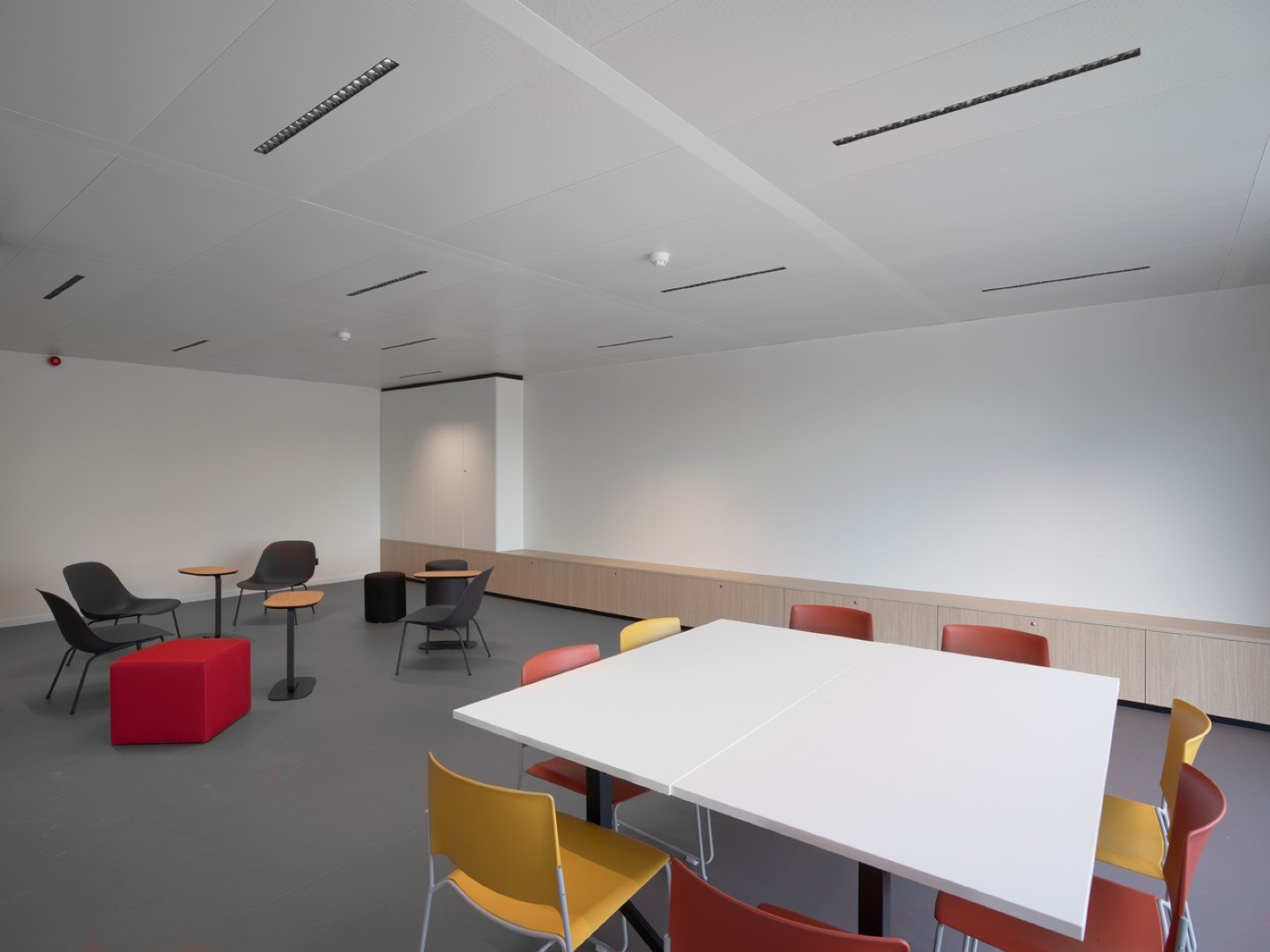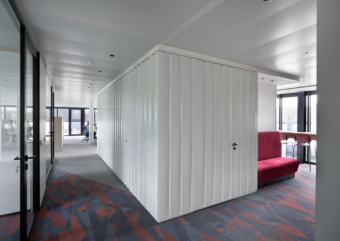 Alongside our relocatable partitions (JB 2000 and JB 4000) and JB COOL climate ceilings, Beddeleem also handled the plasterboard partitions, the floor finishes (carpet, vinyl and tiles), the furniture from collections like JB LOCKERS, JB STORE and JB DESK, the customized furniture and the painting.