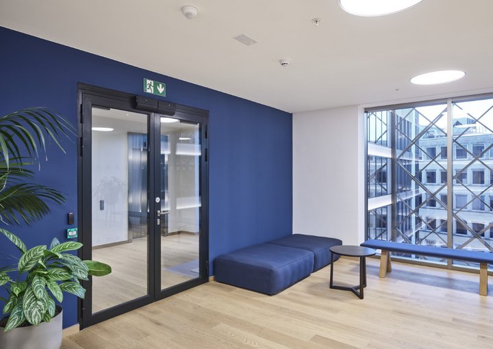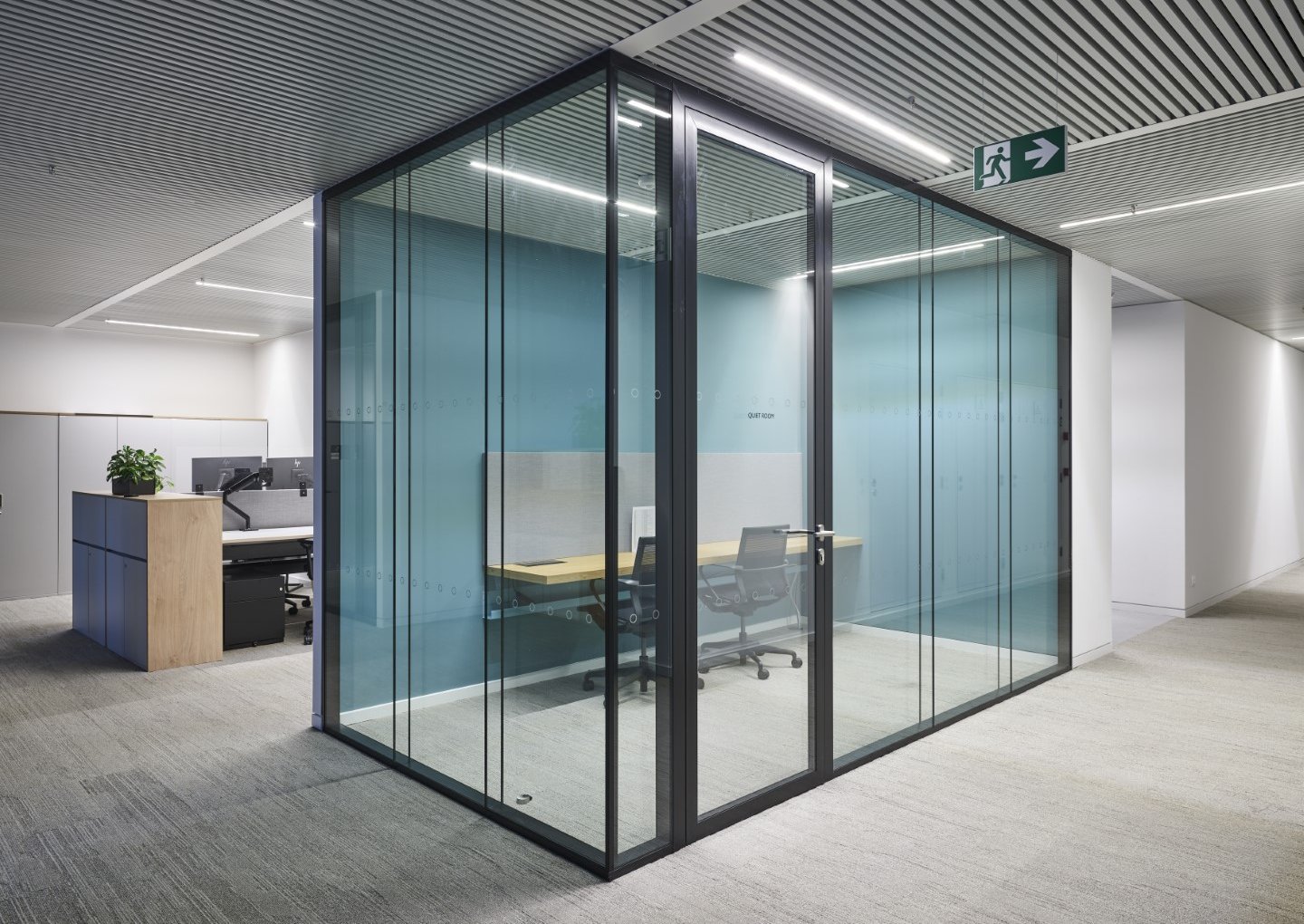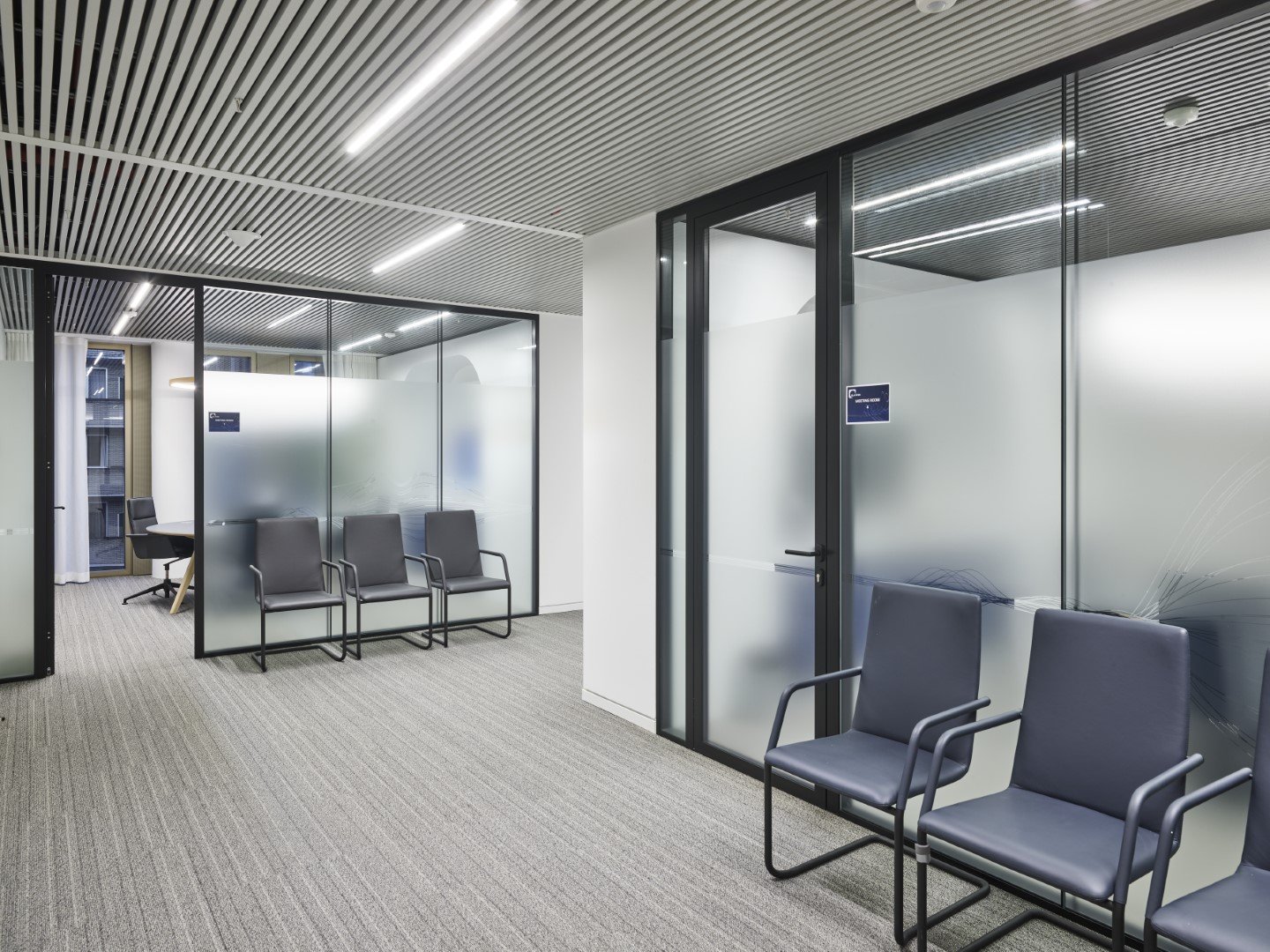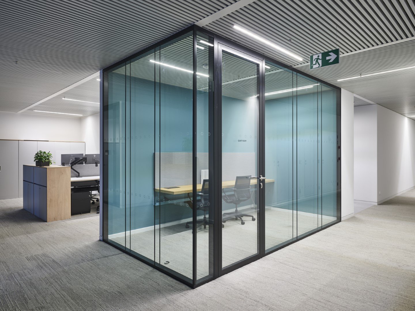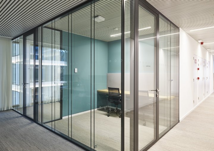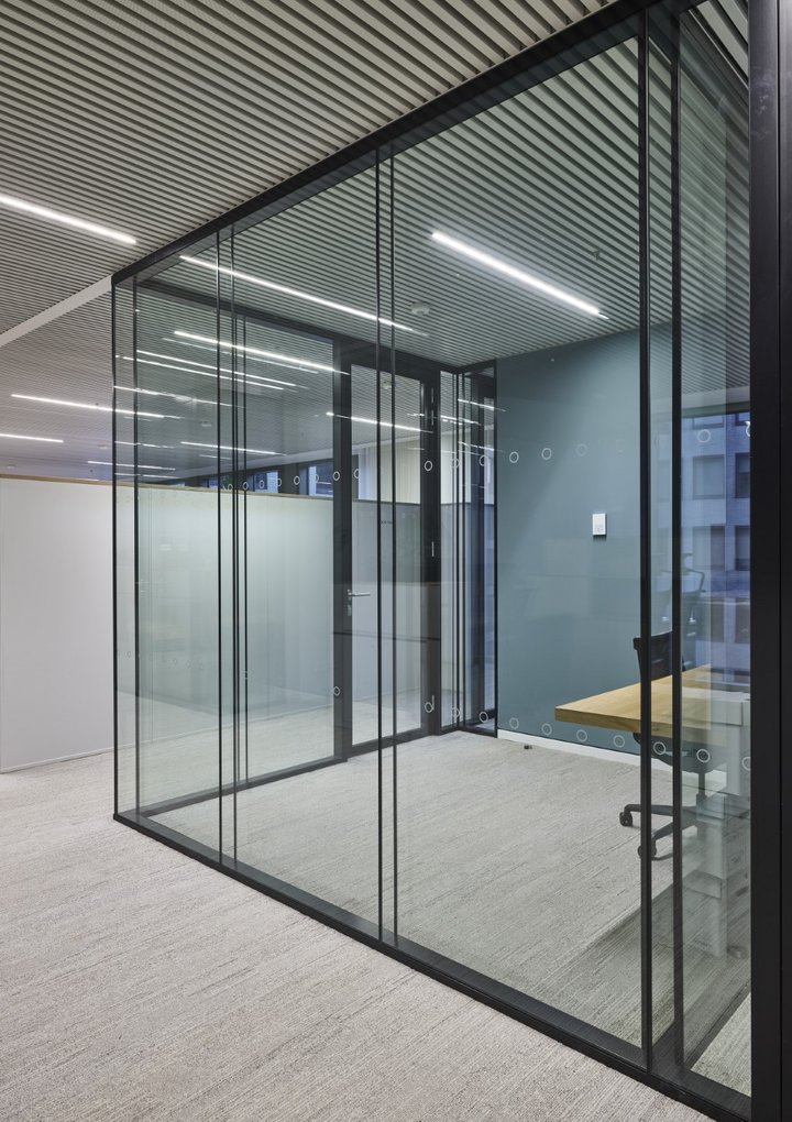 A total of 3 floors in the new Tweed office building in Brussels were completely furnished with JB PURE 100 relocatable partitions in combination with plasterboard partitions. The entrance areas were equipped with double doors in JB FIREGLASS partitions. JB ABSORB WALL partitions with Kwadrat upholstered panels provide the necessary acoustics.
