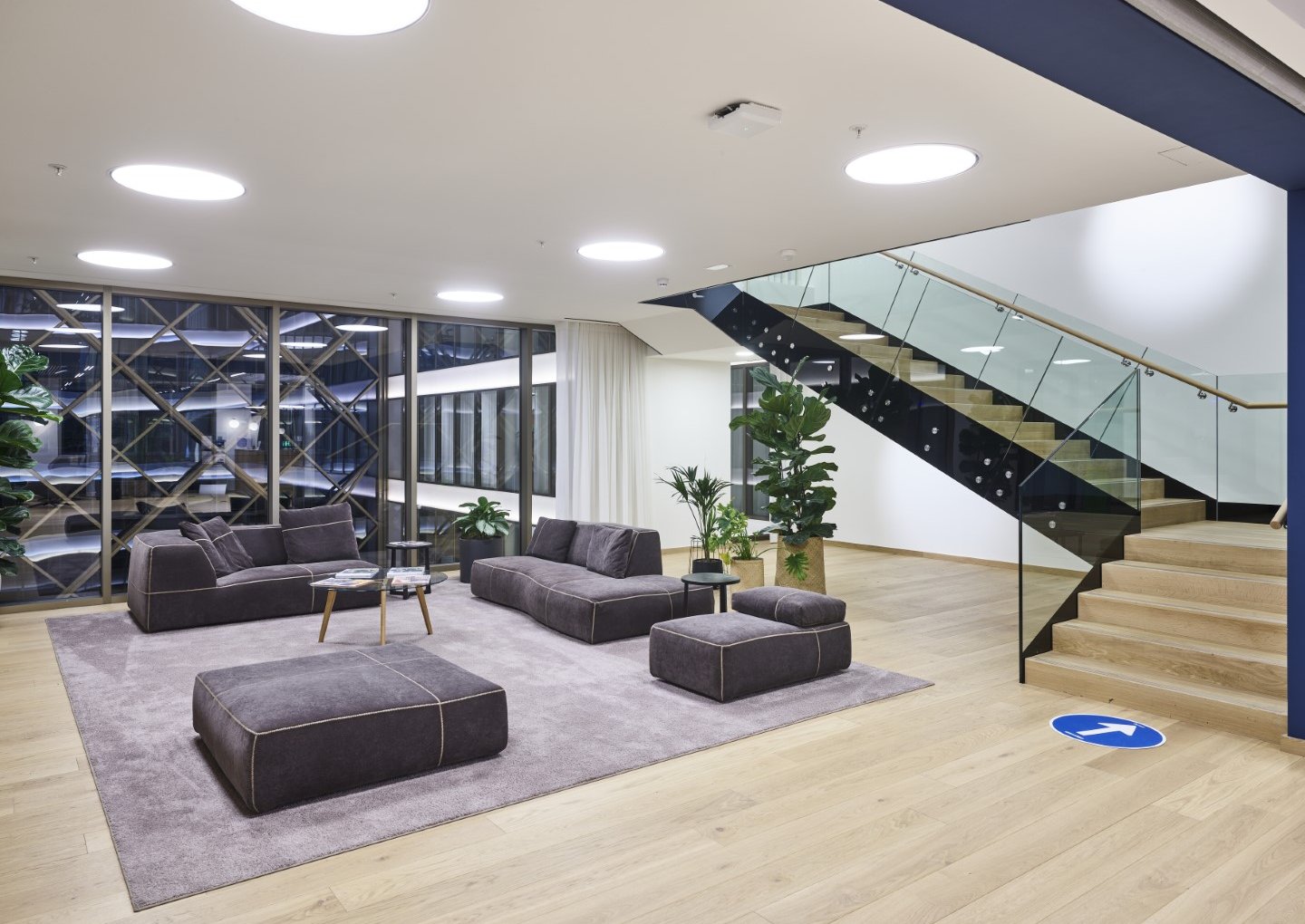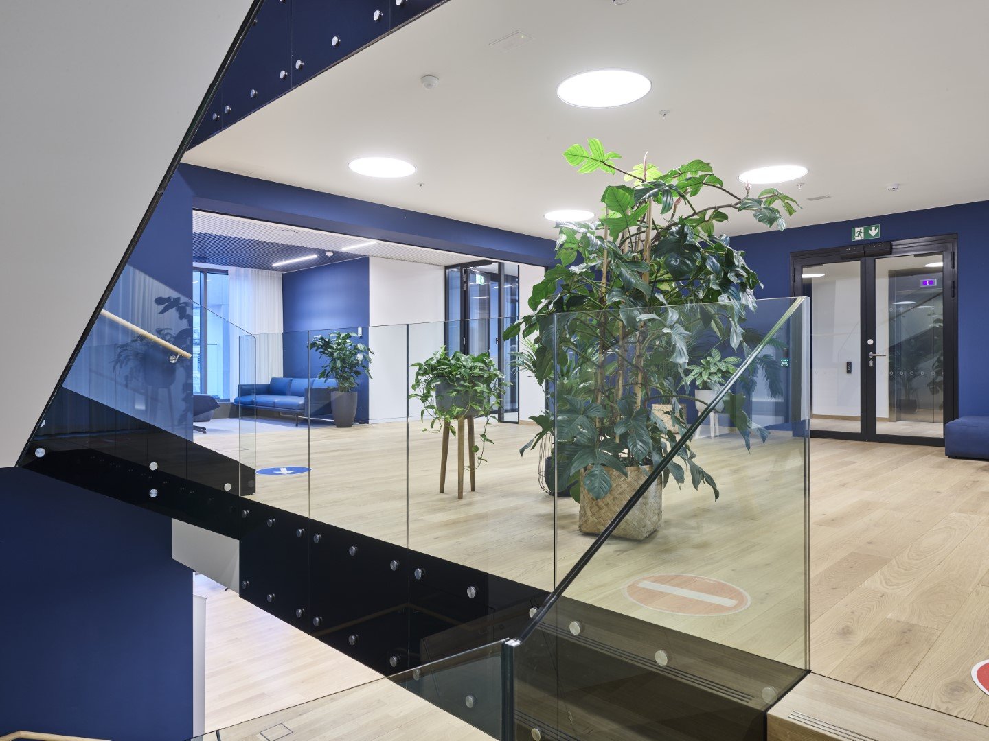 In addition, Beddeleem also provided interior joinery with special wall connections, an impressive staircase and JB DOOR block and hide door assemblies, 3.200 m² of floor coverings with carpet, vinyl and special magnetic parquet and 5.000 m² of painting works.