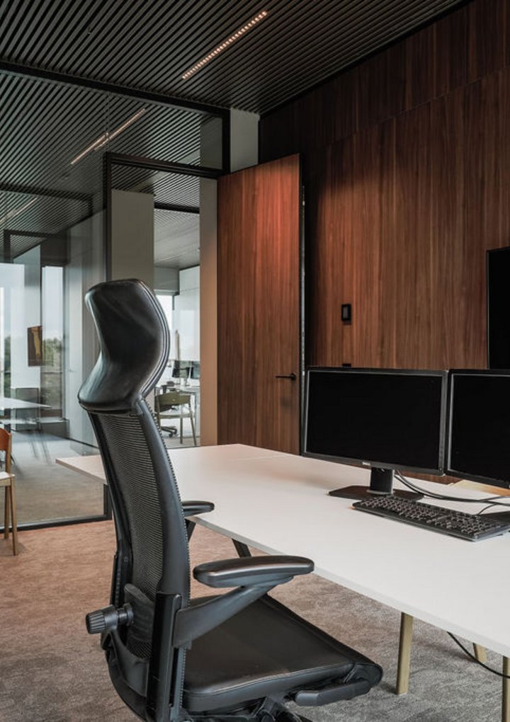 These partitions offer unparalleled flexibility, allowing Puilaetco to adapt its interior space to changing business needs. The ease of reconfiguration, combined with the clean, minimalist design, blends seamlessly with the office's overall high-end aesthetic.