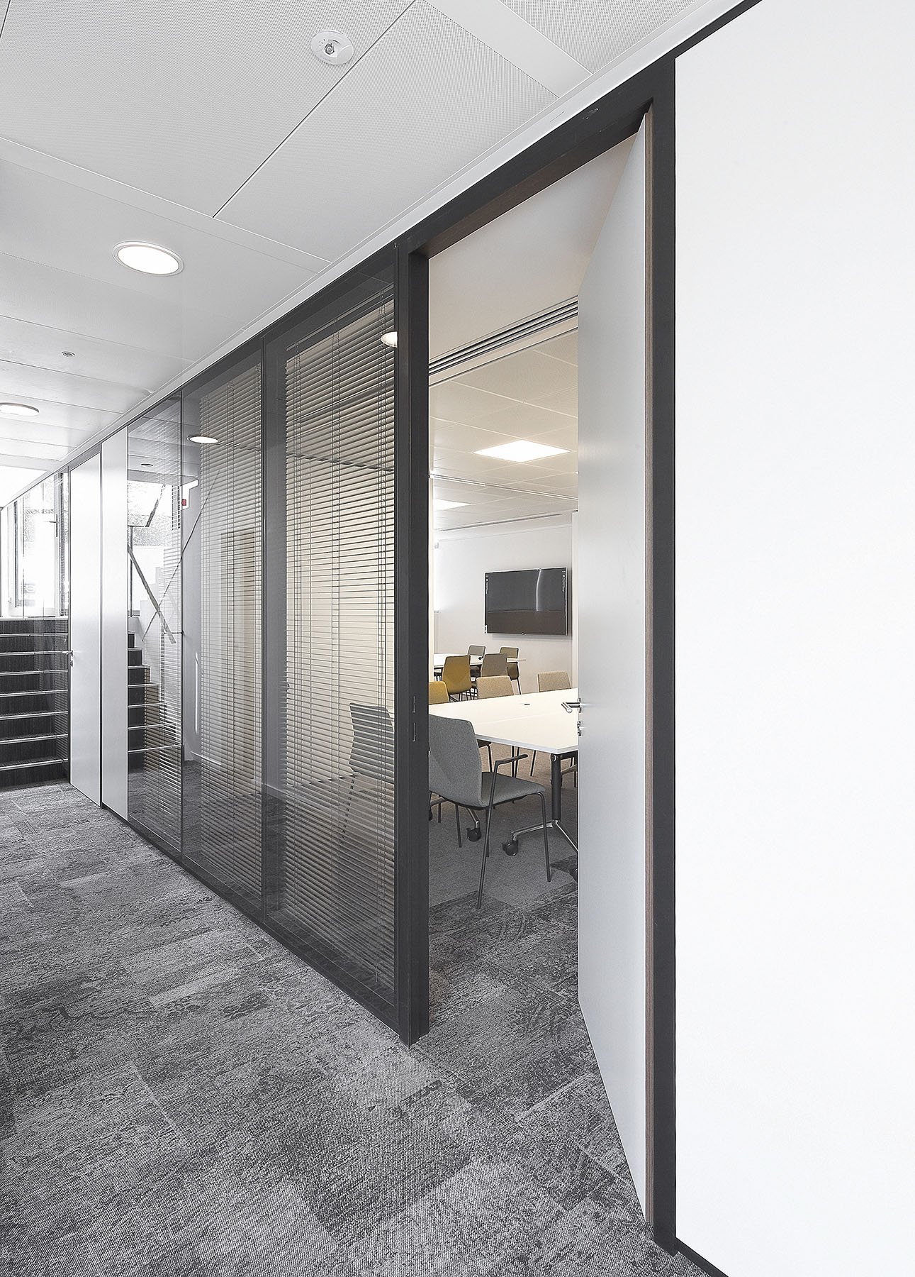 The system wall JB 2000 FLUSH is a glass partition that is compatible with the full partition system JB 2000 and can be used in all utility buildings and is ideal to create subdivisions in office buildings.