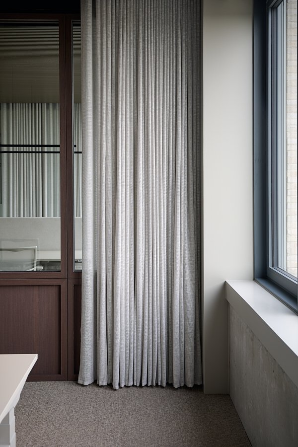 In addition, the wall system’s sleek glass frames contribute to the spaces' overall open, modern feel.